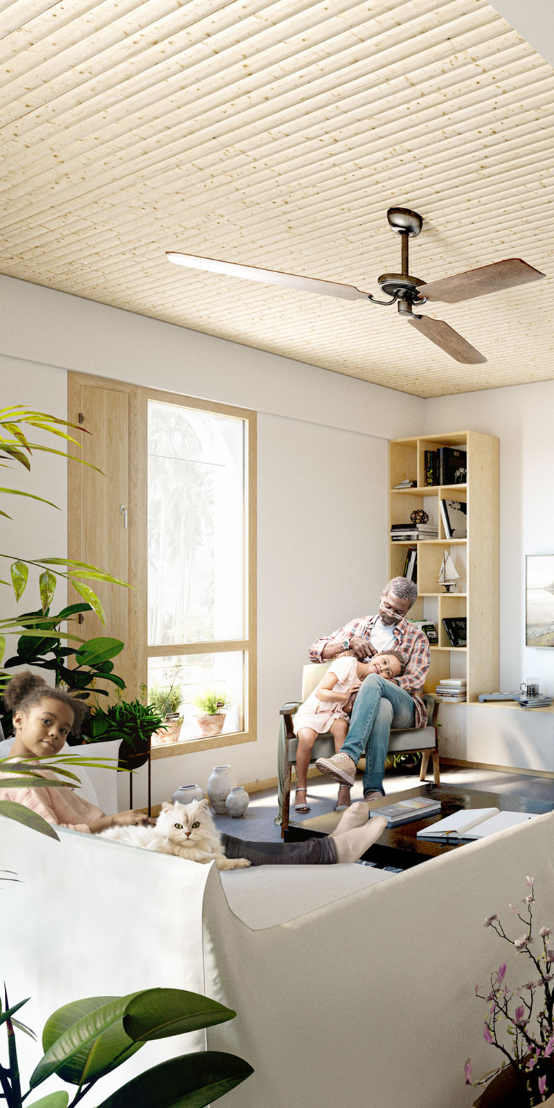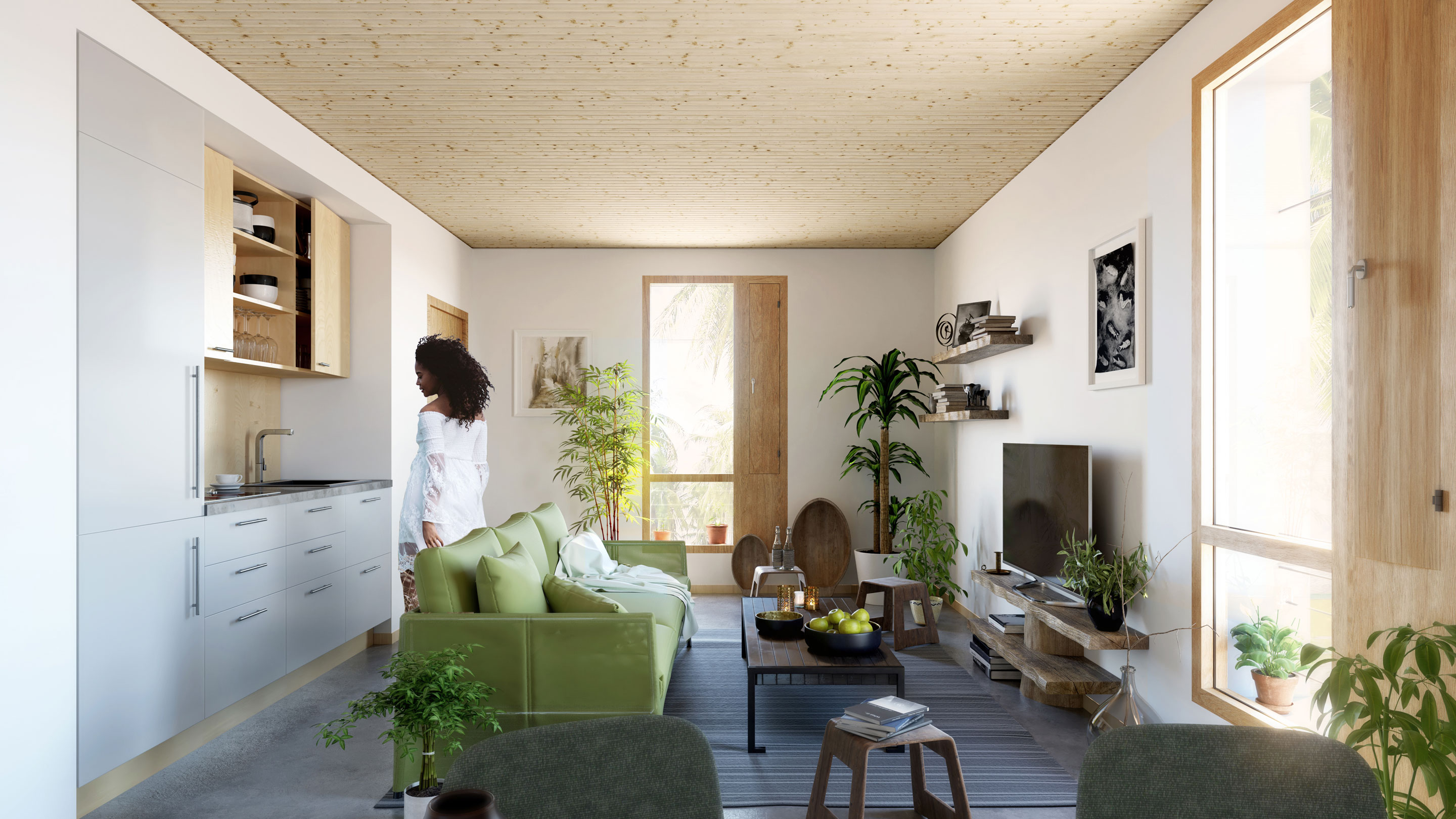 Through the use of local resources and craftsmanship the project aims to create sustainable buildings and living concepts which will help to empower local communities. Shared amenities, centralized solutions, and options for shared gardens and nurseries based on permaculture principles are integrated into the design. In addition to the use of the most sustainable building material; timber, all apartments allow for cross ventilation. The window design is not only directed to allow for optimized permanent sun-shading but also to include smart solutions for day-round ventilation and possible integration of air-conditioning units while harvesting its drainage water.